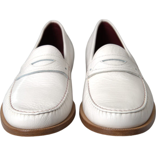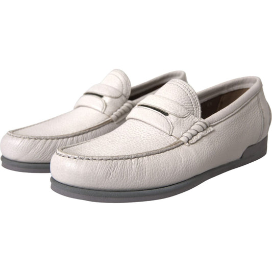 حذاء موكاسين سهل الارتداء من الجلد باللون الأبيض من دولتشي آند غابانا