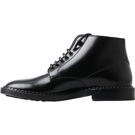 حذاء الكاحل الجلدي الأسود الأنيق من دولتشي آند غابانا