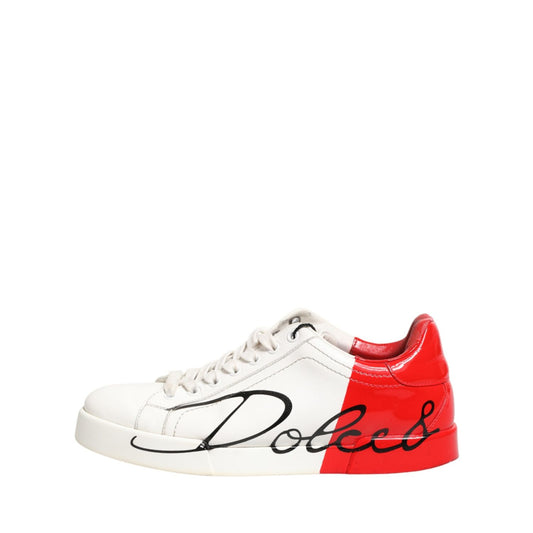 Dolce & Gabbana White Red Portofino Low Top Men Sneakers Shoes