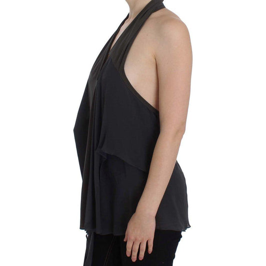 GF Ferre Gray 100% Nylon Short Sleeve Casual Tank Top Blouse