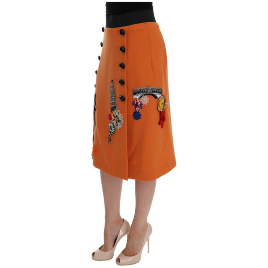 Dolce & Gabbana Orange Wool Crystal Sequin Appliques Skirt