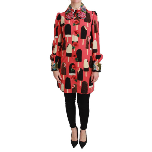 Dolce & Gabbana Pink Silk Brocade Crystal Jacket Coat