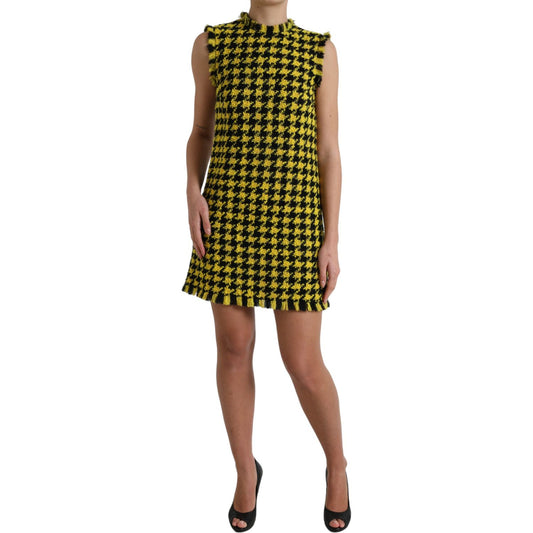 Dolce & Gabbana Yellow Houndstooth Sleeveless Aline Mini Dress