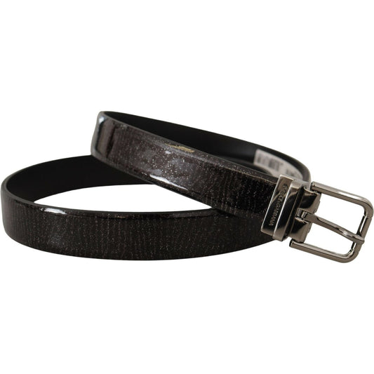 Dolce & Gabbana Black Sparkling Leather Black Metal Buckle Belt