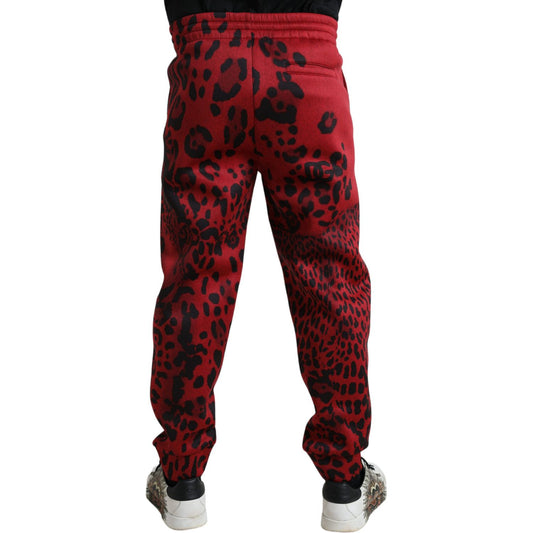 Dolce & Gabbana Red Black Leopard Stretch Jogger Pants