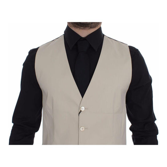 Dolce & Gabbana Beige Cotton Slim Fit Button Front Dress Vest