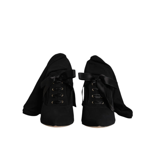 Dolce & Gabbana Black Tulle Stretch Heels Mid Calf Boots Shoes