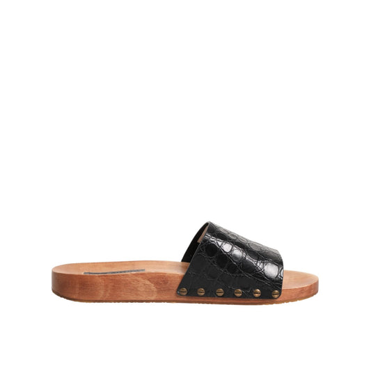 Dolce & Gabbana Black Brown Leather Slides Sandals Shoes